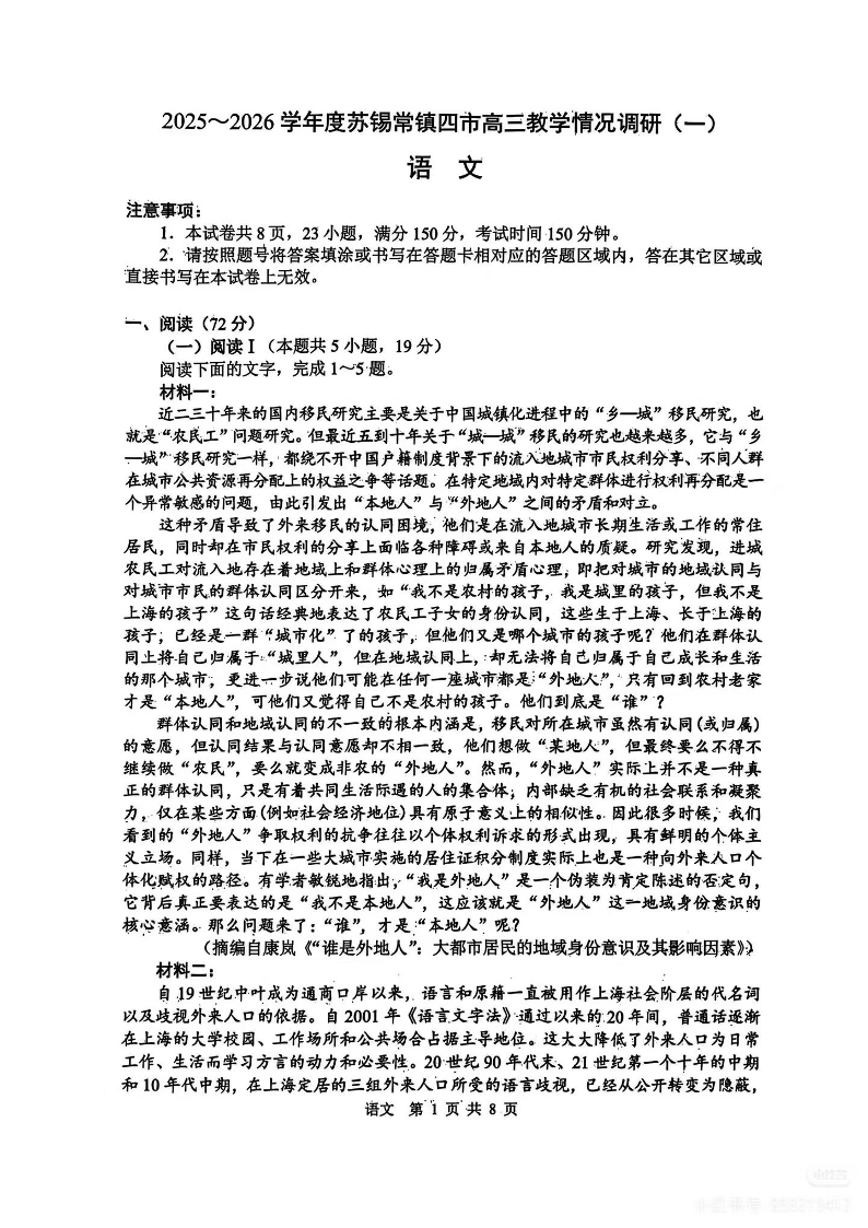 2025-2026学年度苏锡常镇四市高三教学情况调研(一)语文.pdf