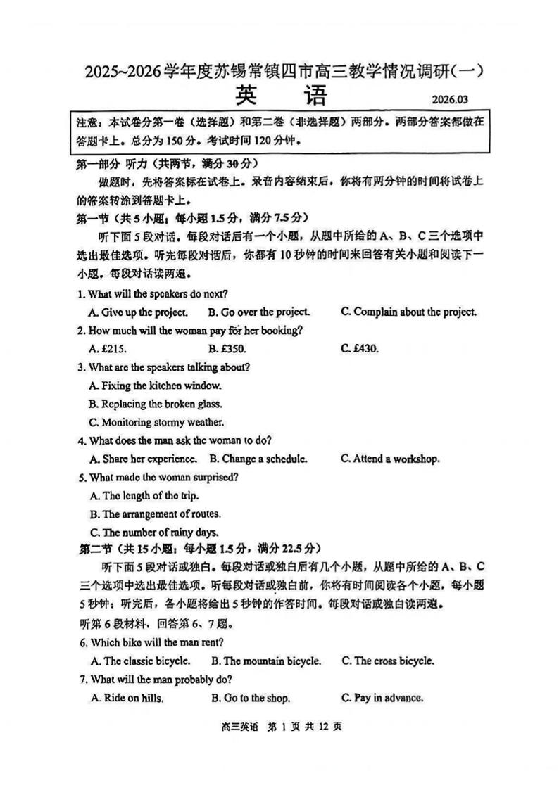 2025-2026学年度苏锡常镇四市高三教学情况调研(一)英语.pdf