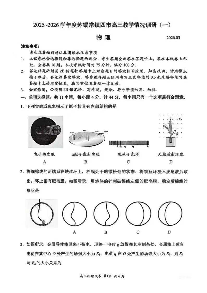 2025-2026学年度苏锡常镇四市高三教学情况调研(一)物理.pdf