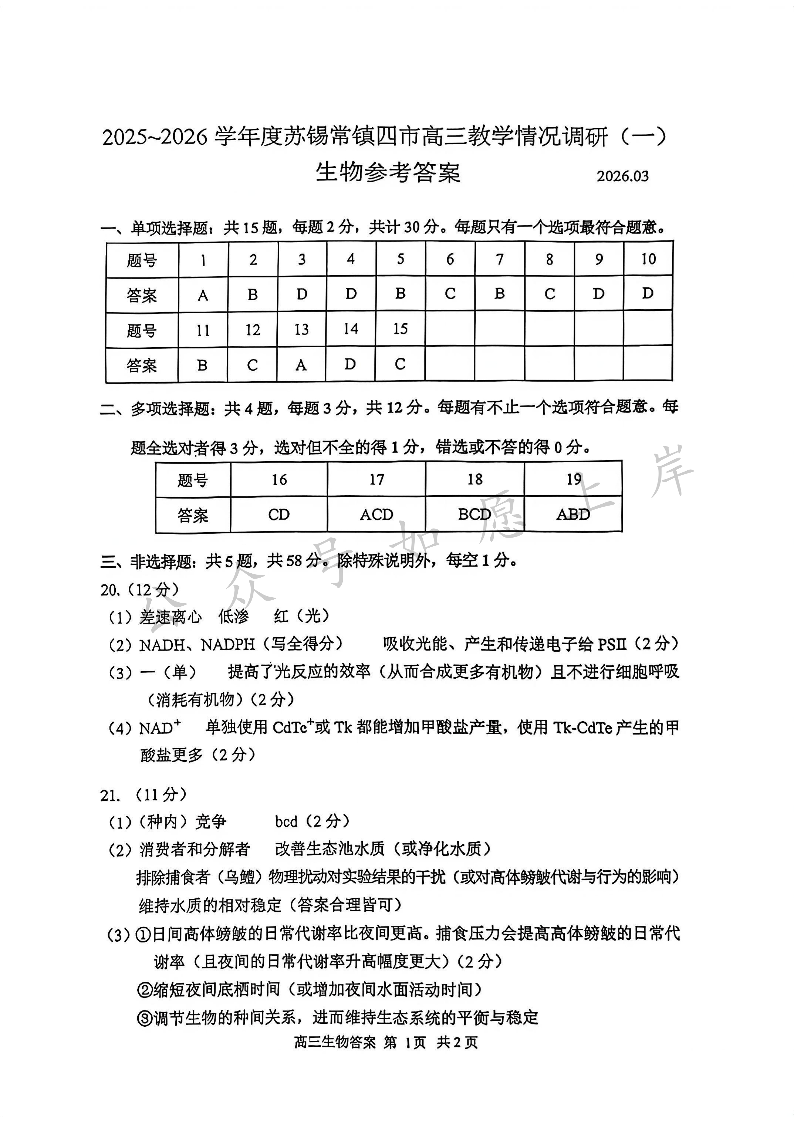 2025-2026学年度苏锡常镇四市高三教学情况调研(一)生物答案.pdf