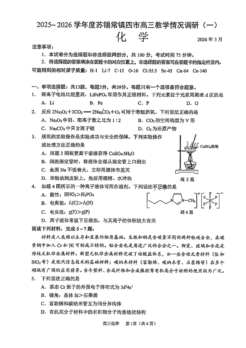 2025-2026学年度苏锡常镇四市高三教学情况调研(一)化学.pdf