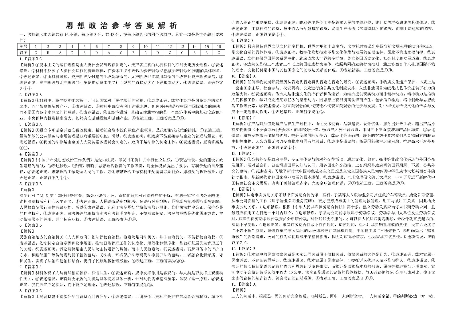 2026年全市高三(3月)模拟考试 政治答案.pdf