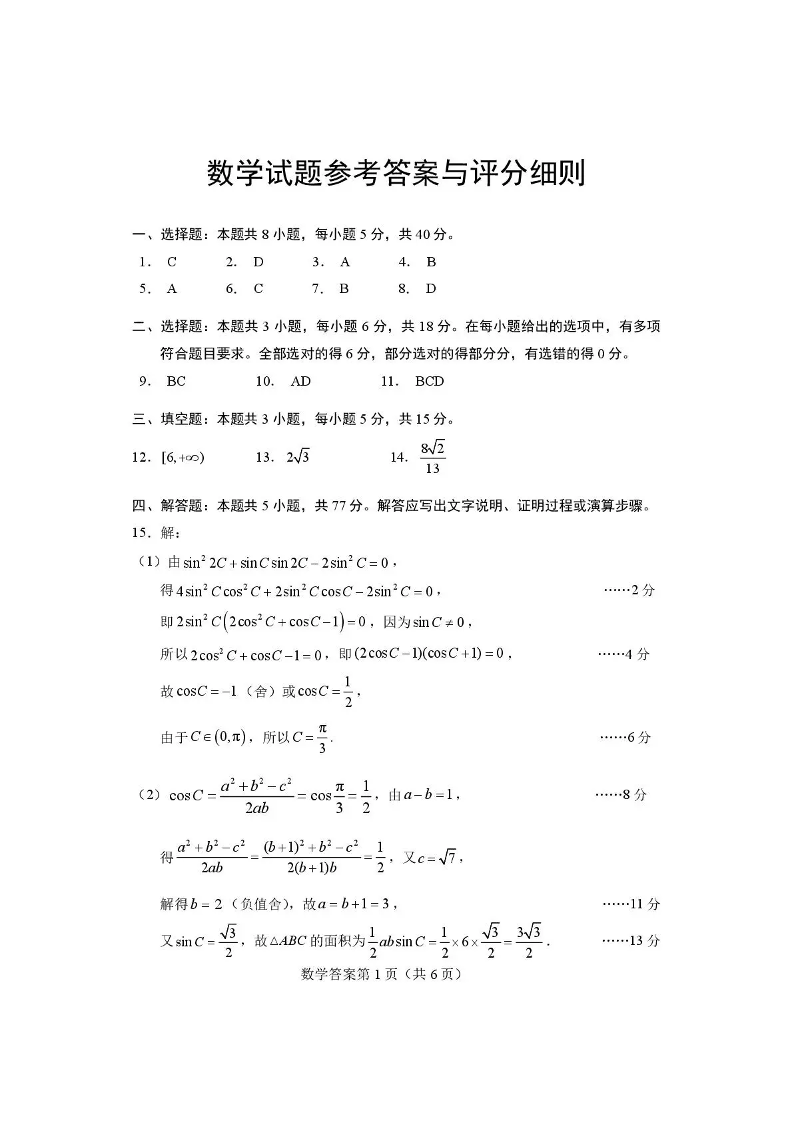 2026年全市高三(3月)模拟考试 数学答案.pdf