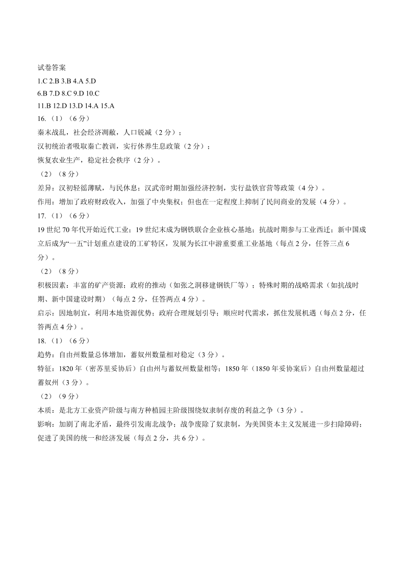 2026年全市高三(3月)模拟考试 历史答案.pdf