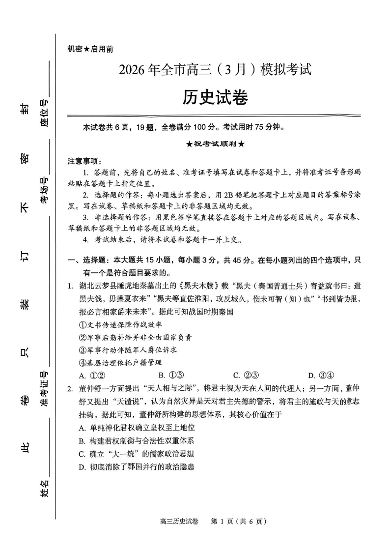 2026年全市高三(3月)模拟考试 历史.pdf