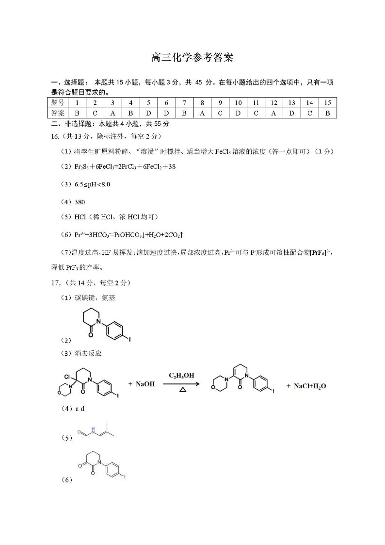 2026年全市高三(3月)模拟考试 化学答案.pdf