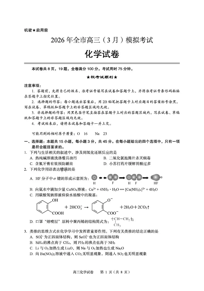 2026年全市高三(3月)模拟考试 化学.pdf