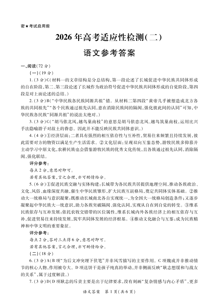 2026年高考适应性检测(二)语文答案.pdf