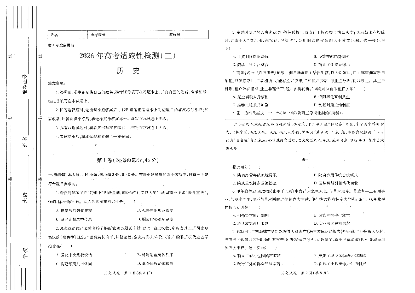 2026年高考适应性检测(二)历史.pdf