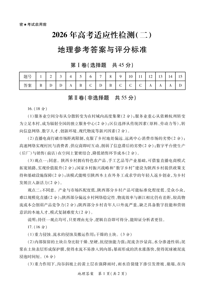 2026年高考适应性检测(二)地理答案.pdf