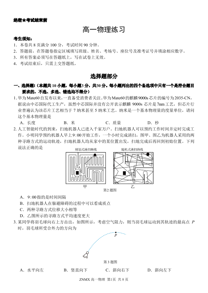 浙江省浙南名校联盟2025-2026学年高一下学期学情调研 物理.pdf
