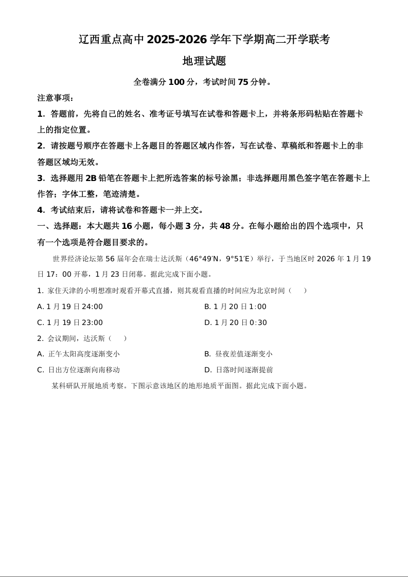 辽宁省辽西重点高中2025-2026学年高二下学期开学联考 地理.docx