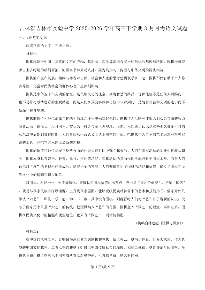 吉林省实验中学2026届高三下学期3月阶段检测 语文.docx