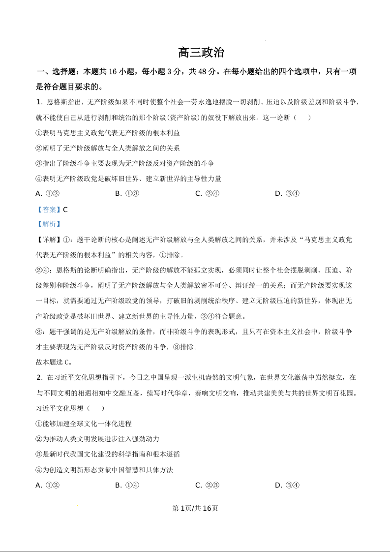 吉林通化市梅河口市第五中学2026届高三下学期一模 政治答案.docx