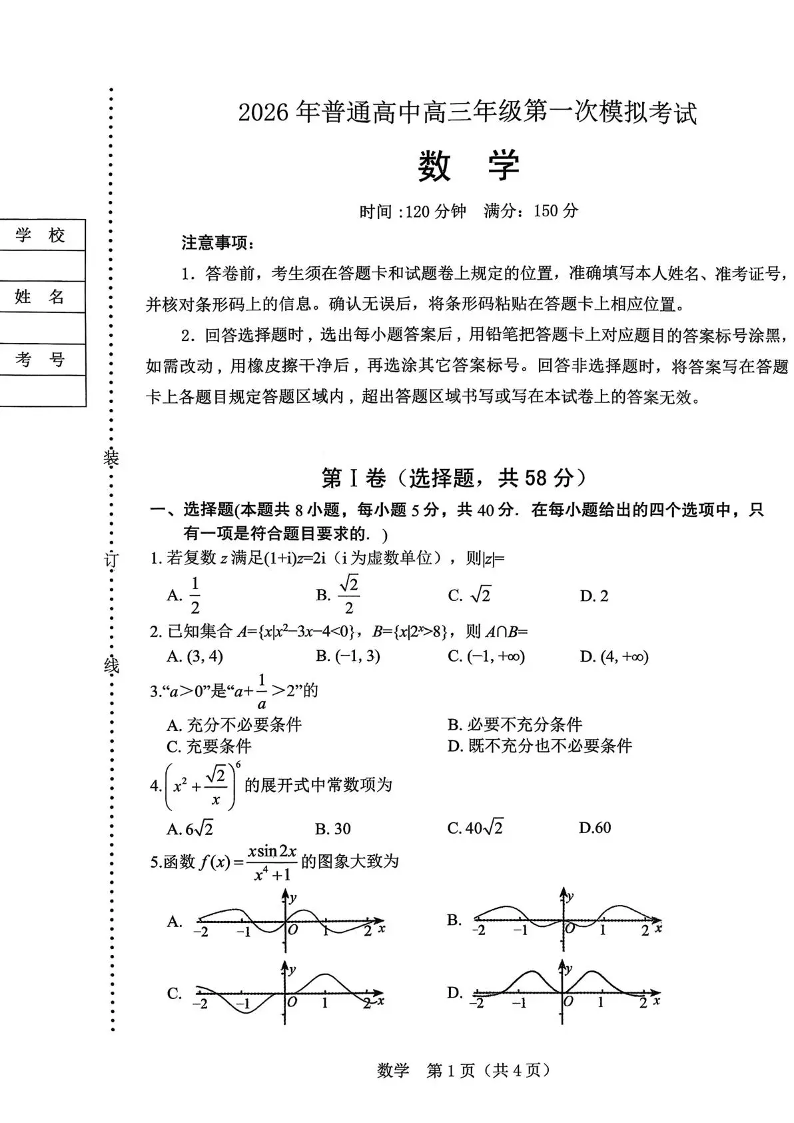 辽阳市2026年普通高中高三年级第一次模拟考试 数学.pdf