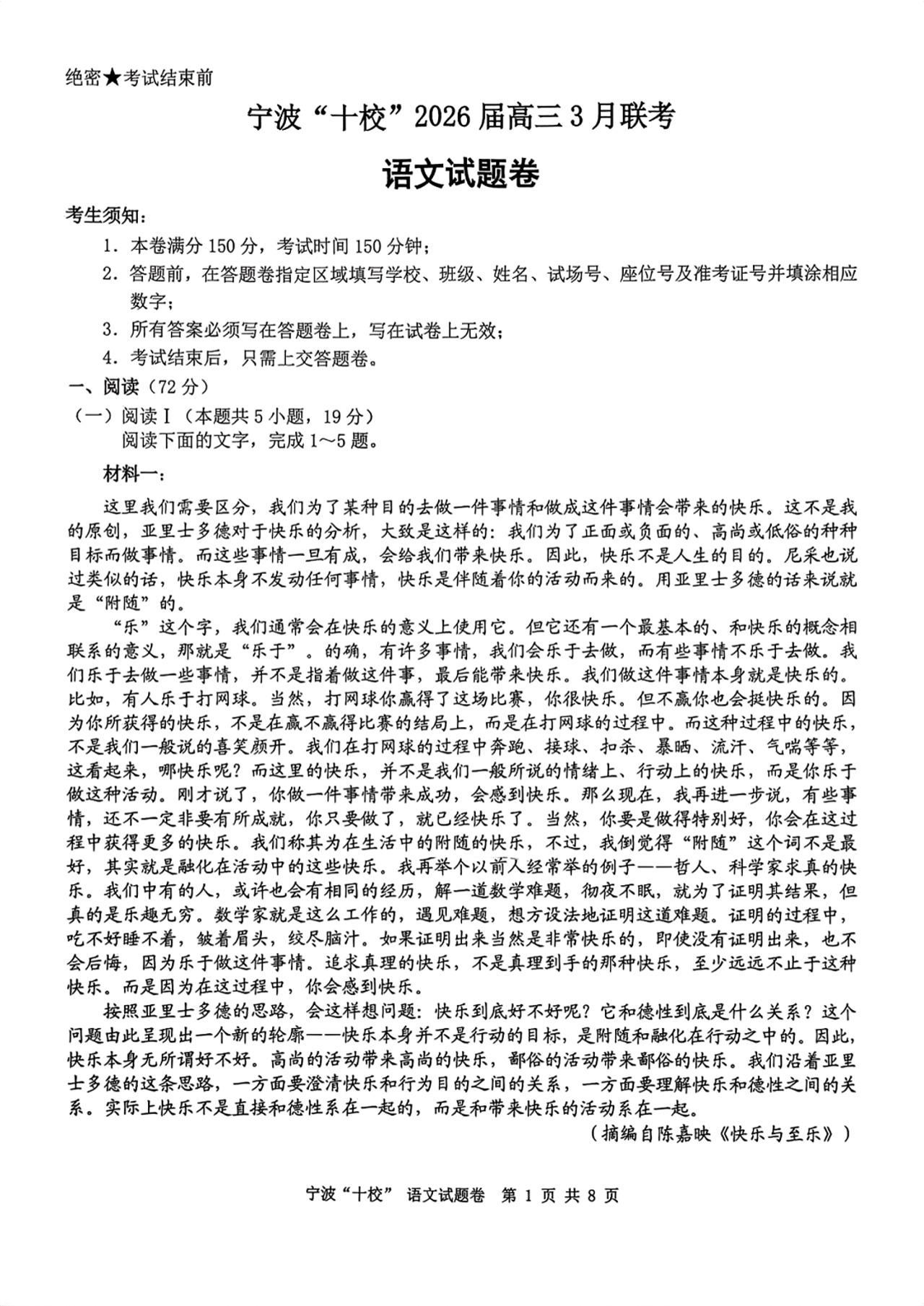 浙江省宁波十校2026届高三年级3月联考 语文.pdf