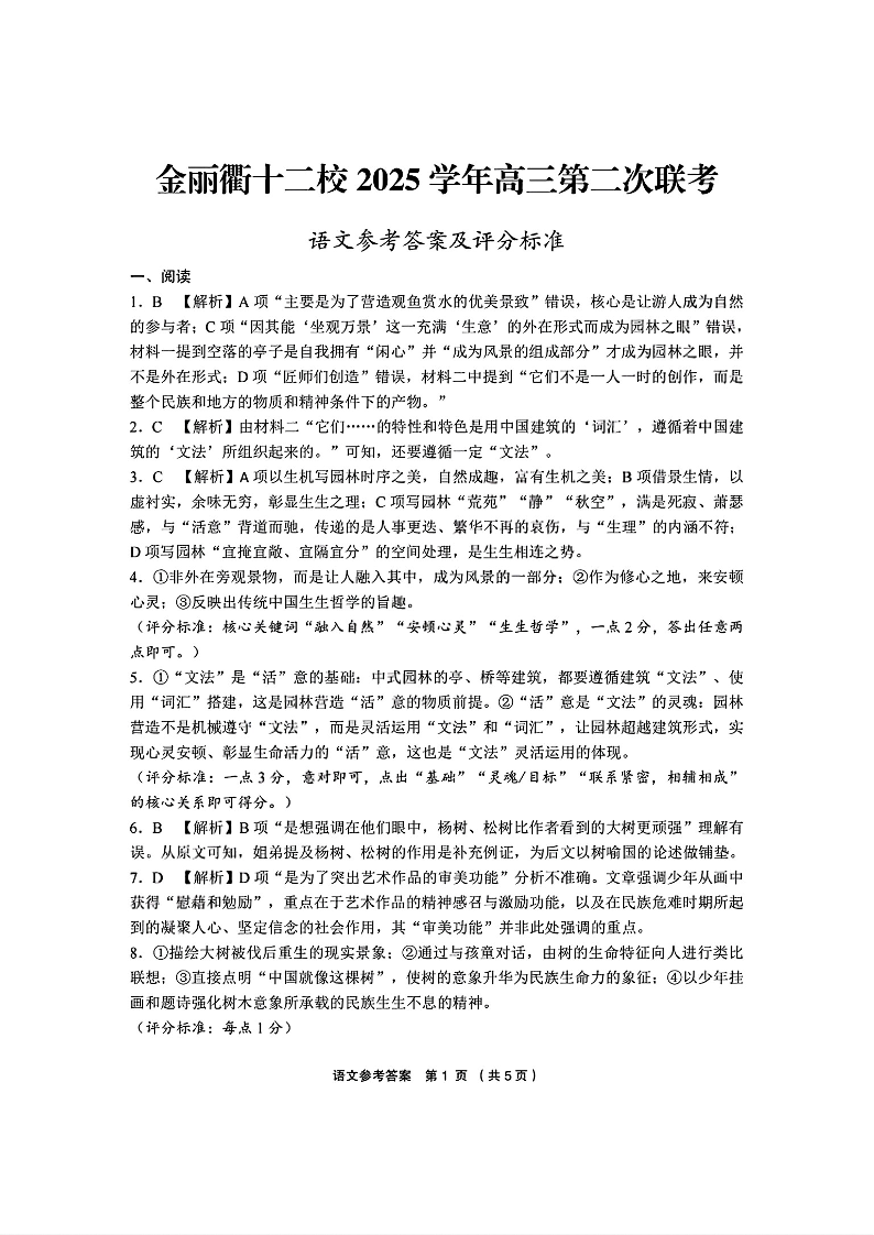 金丽衢十二校2025-2026学年度高三年级第二次联考 语文答案.pdf