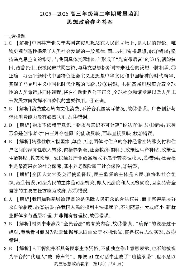 河南省五市2026年高三年级一模考试 政治答案.pdf