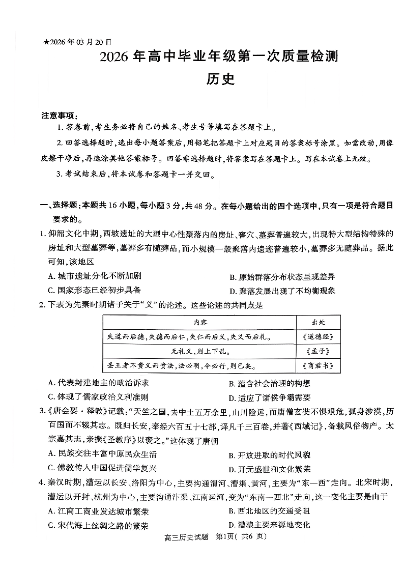河南省五市2026年高三年级一模考试 历史.pdf