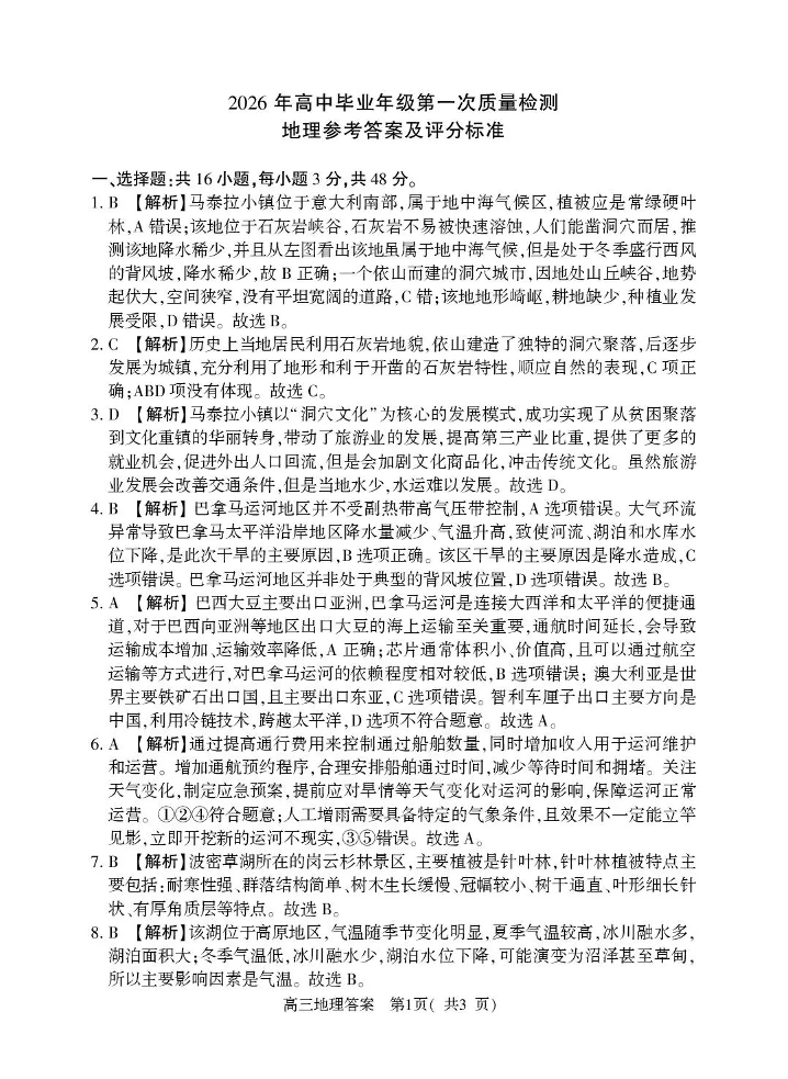 河南省五市2026年高三年级一模考试 地理答案.pdf