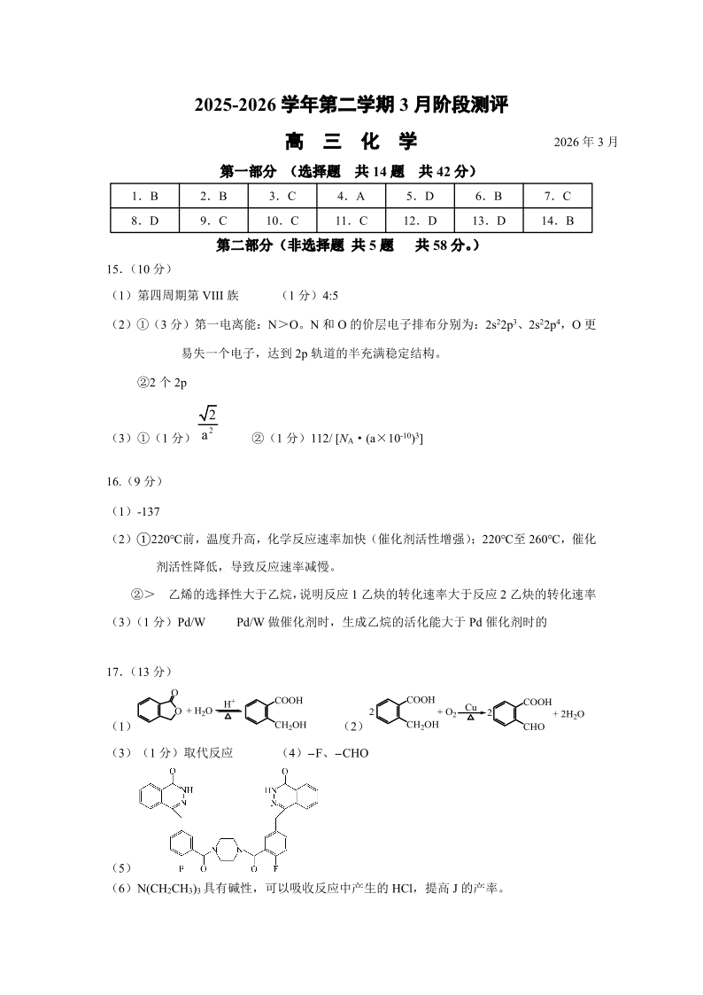 北京市第八十中学2026届高三下学期一模适应性练习 化学答案.pdf