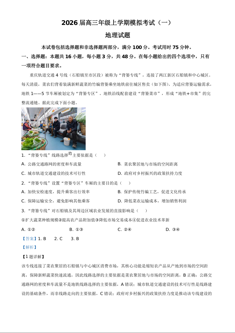 河北省名校协作体2026届高三上学期模拟考试(一)地理答案.docx