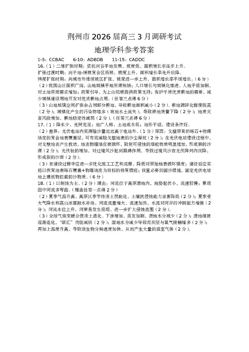 荆州市2026届高三3月调研考试 地理答案.pdf