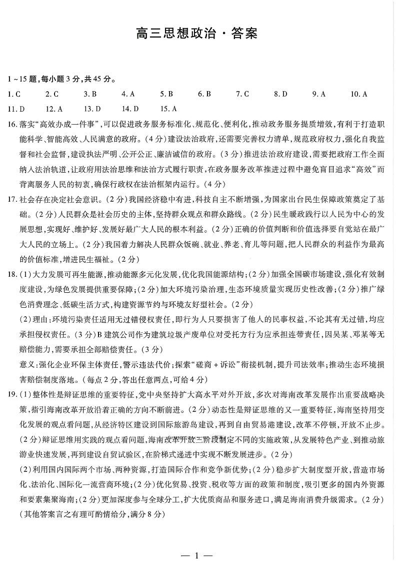 湘一名校联盟2026届高三下学期3月质量检测 政治答案.pdf