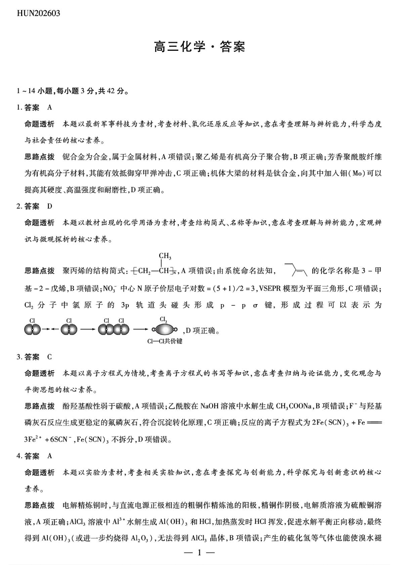 湘一名校联盟2026届高三下学期3月质量检测 化学答案.pdf
