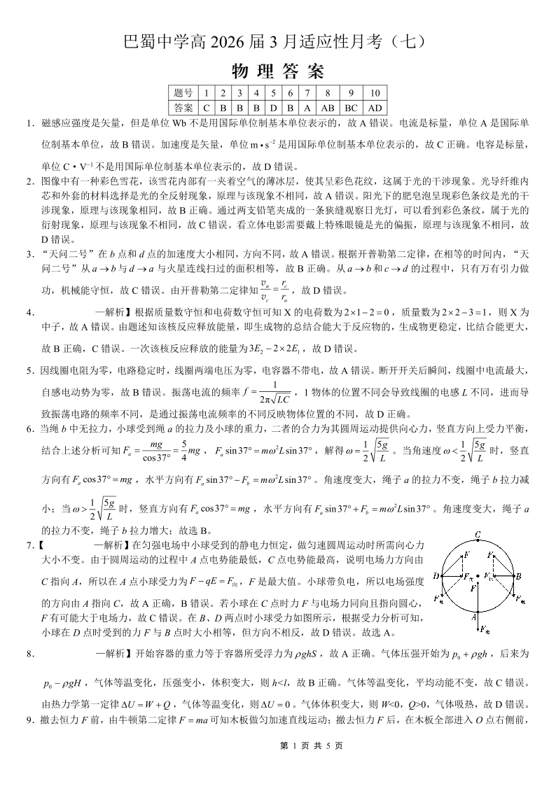 巴蜀中学2026届高考适应性月考卷(七)物理答案.pdf