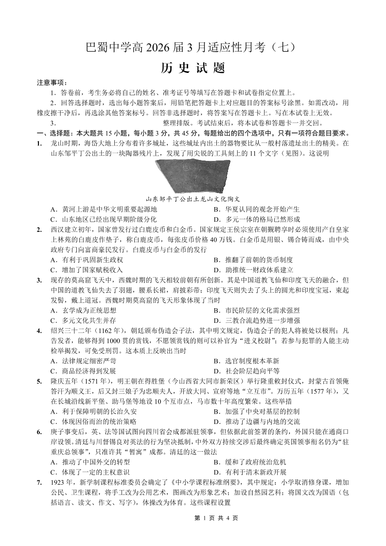 巴蜀中学2026届高考适应性月考卷(七)历史.pdf
