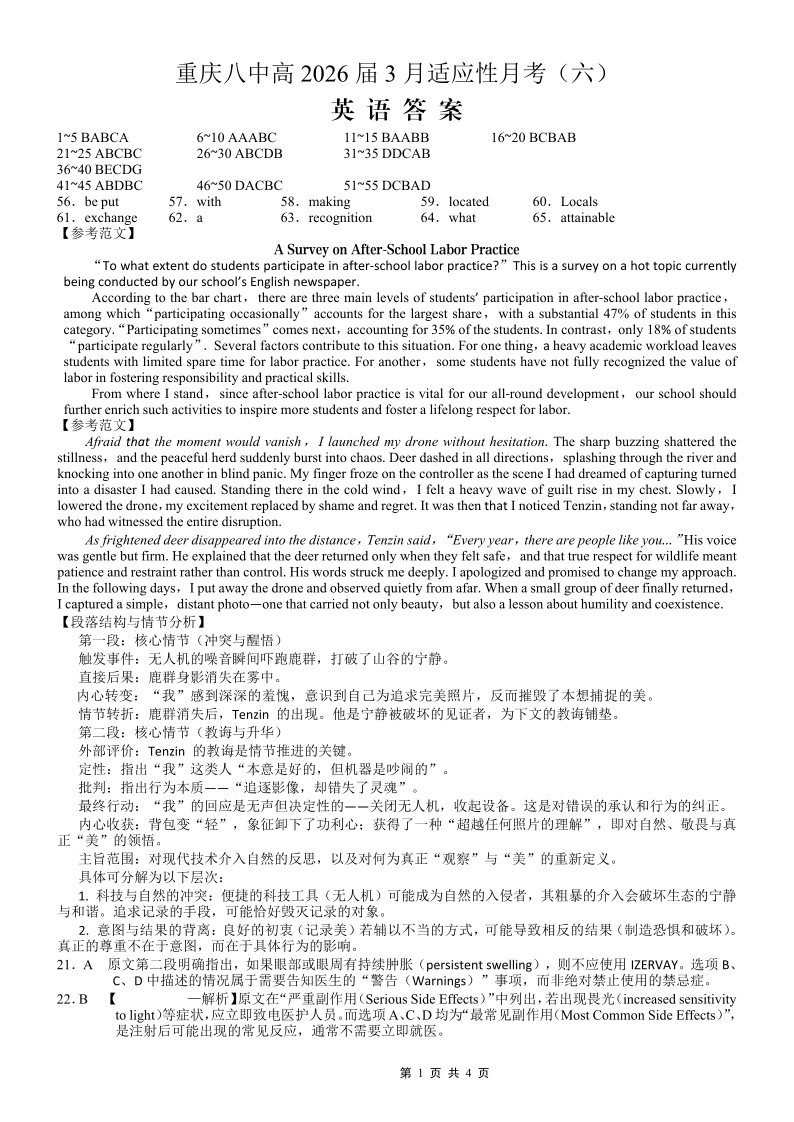 重庆市第八中学2026届高考适应性月考卷(六)英语答案.pdf