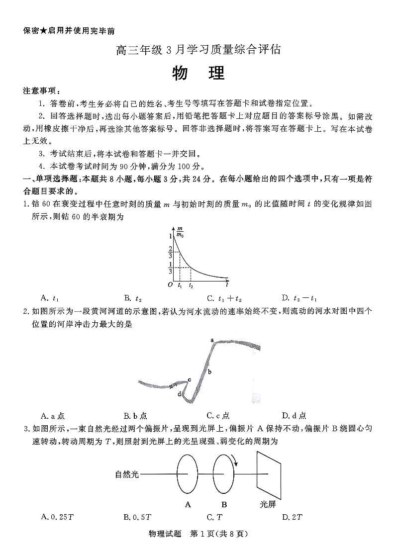 山东省(九五联考)高三年级3月学习质量综合评估 物理.pdf