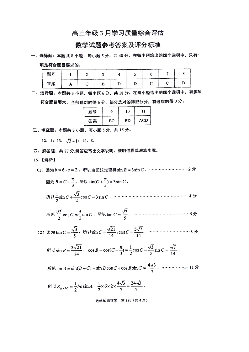 山东省(九五联考)高三年级3月学习质量综合评估 数学答案.pdf