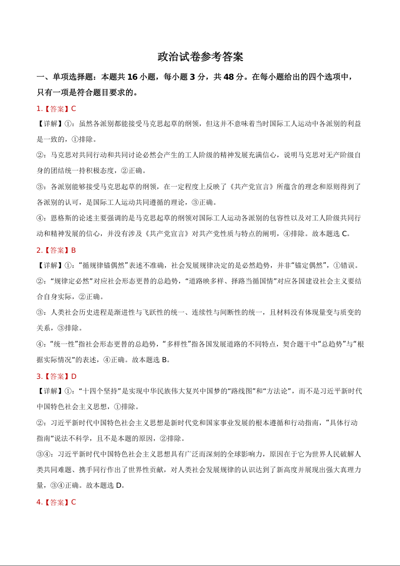 安徽铜陵市2026届高三下学期第一次质检 政治答案.docx