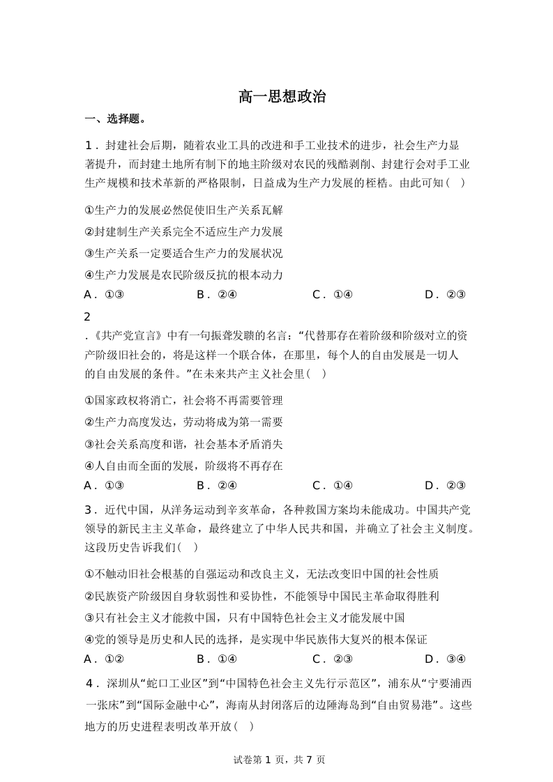 湖北省楚天协作体2025-2026学年高一下学期3月阶段检测 政治试题(含答案).docx