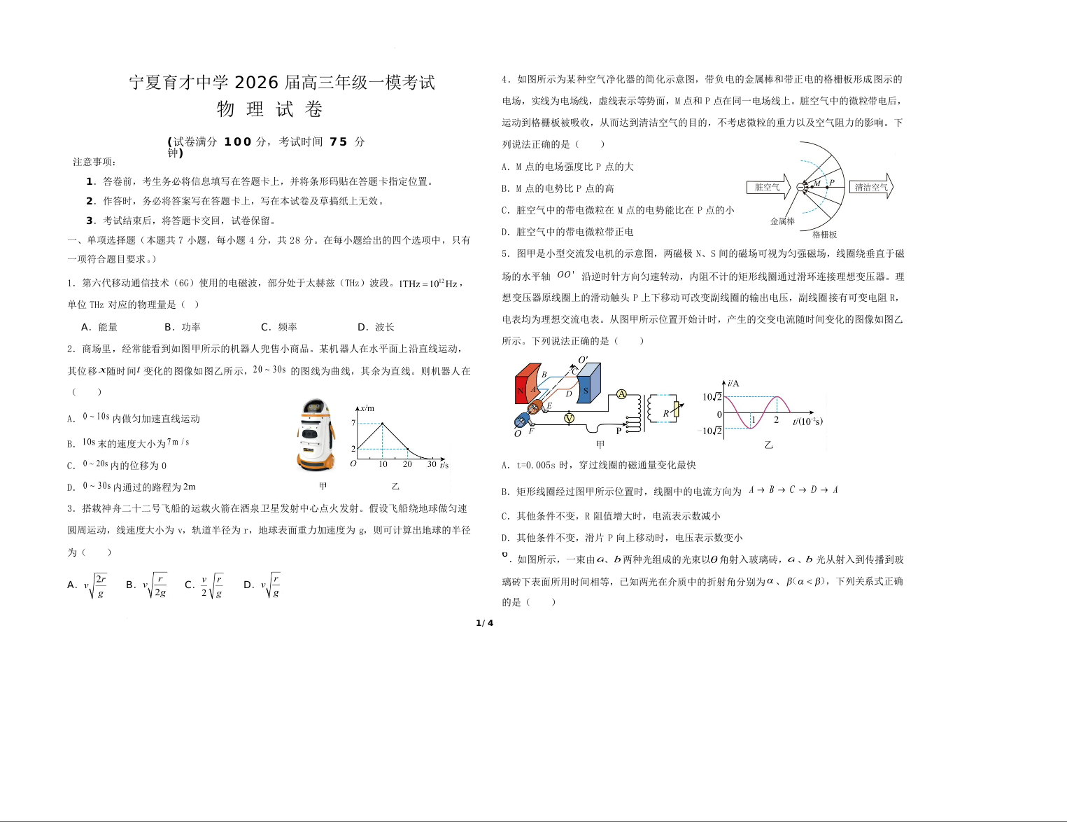 宁夏育才中学2026届高三年级一模考试 物理.docx