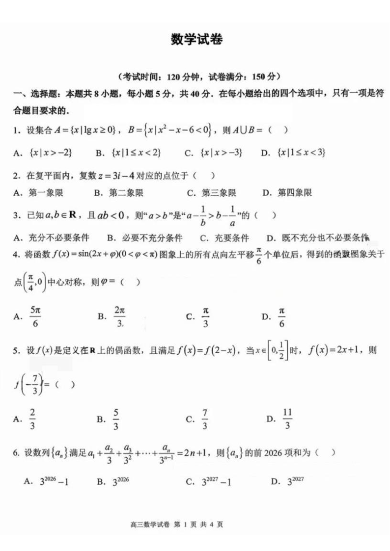 江西省五市十校协作体2026届高三年级3月第二次联考 数学.pdf