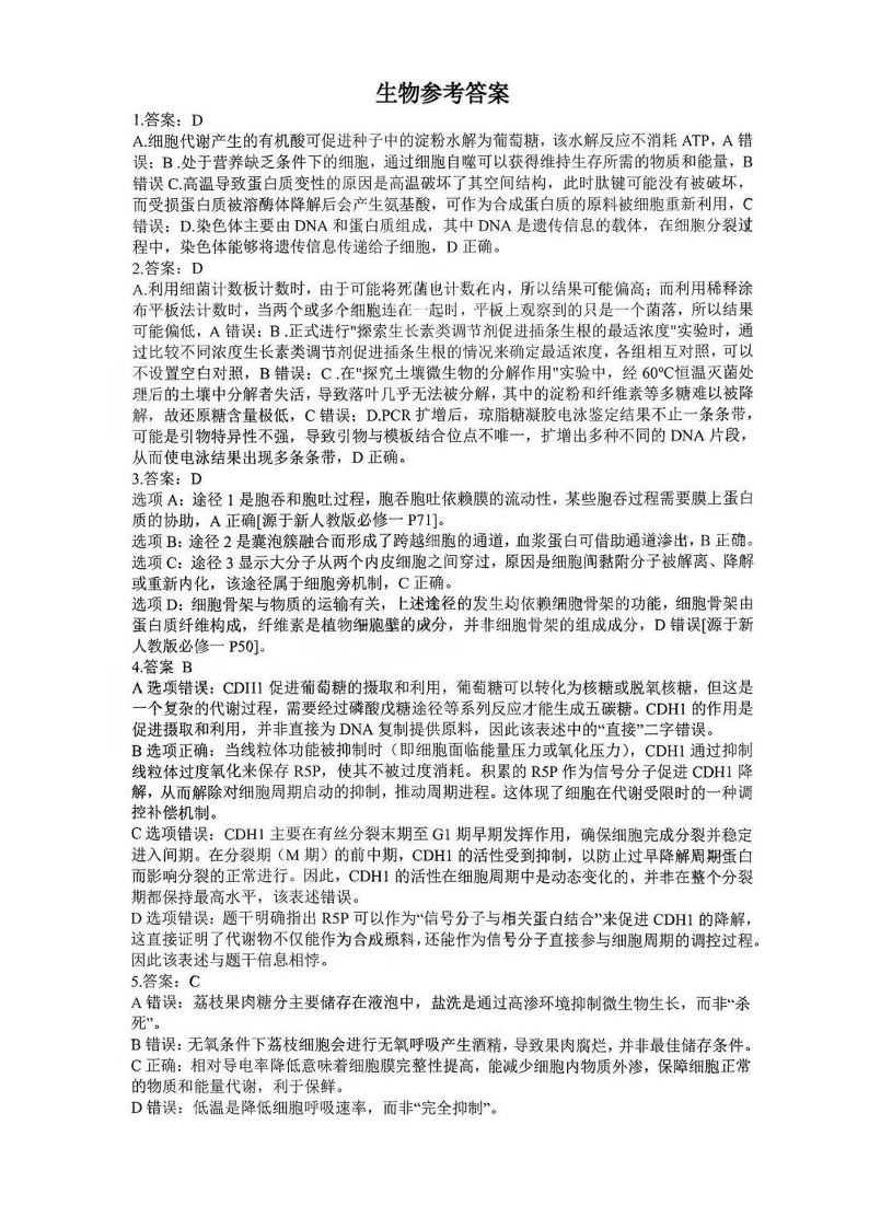 江西省五市十校协作体2026届高三年级3月第二次联考 生物答案.pdf