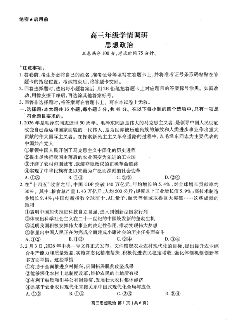 辽宁省点石联考2026届高三年级3月学情调研考试 政治.pdf