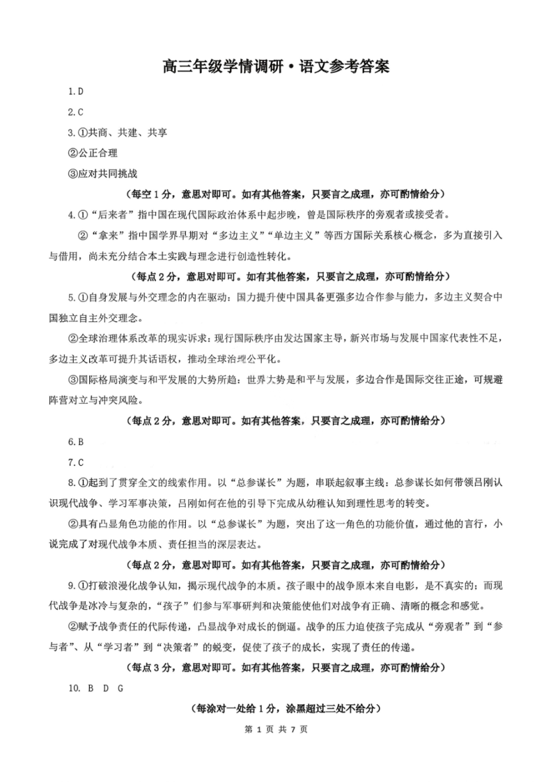 辽宁省点石联考2026届高三年级3月学情调研考试 语文答案.pdf