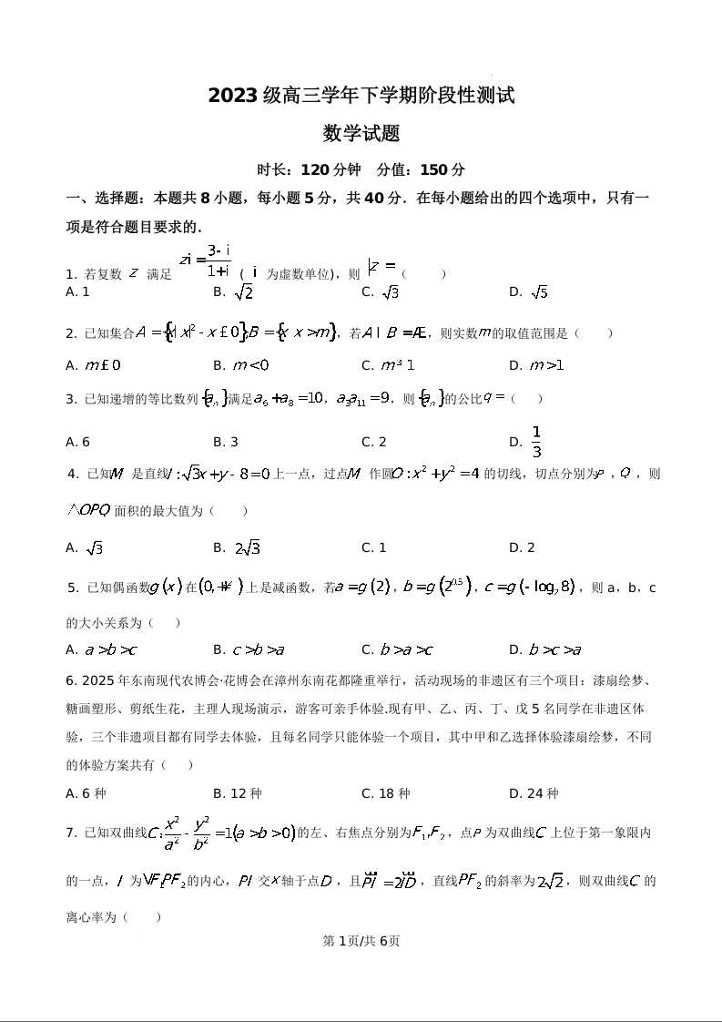 黑龙江牡丹江市第一高级中学2026届高三下学期阶段性测试 数学.docx