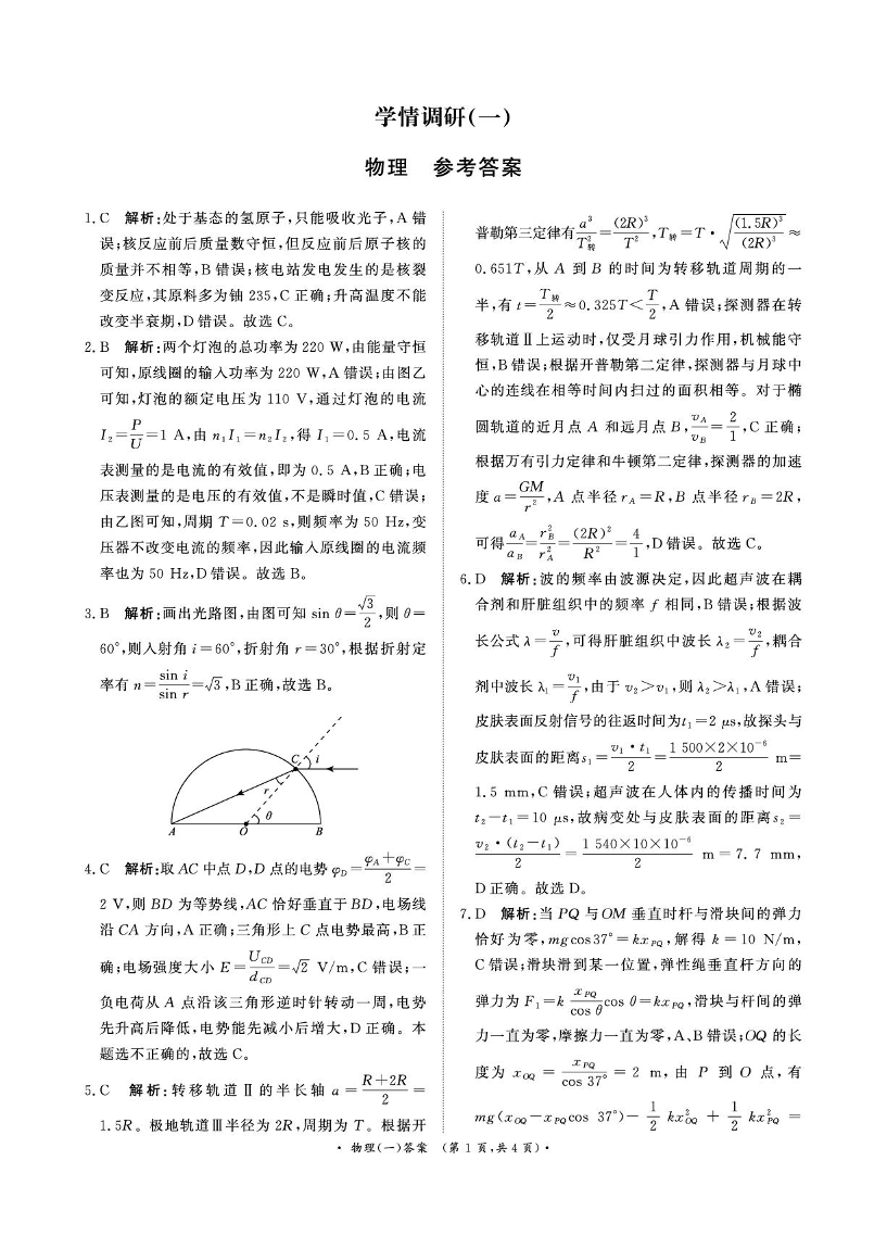 河南省开封高级中学2026届高三下学期学情调研(一)物理答案.pdf