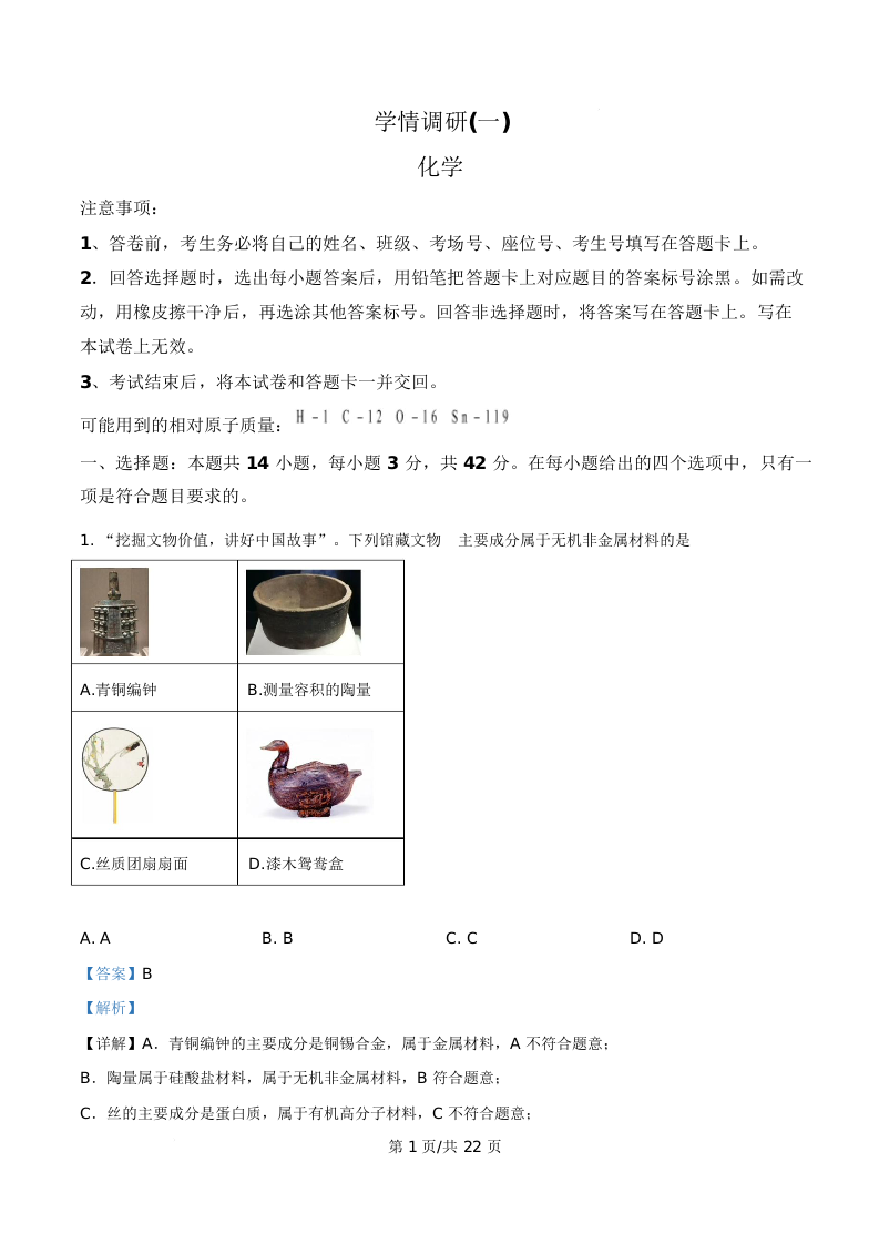 河南省开封高级中学2026届高三下学期学情调研(一)化学答案.docx