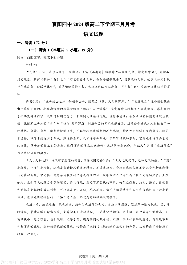 湖北省襄阳市第四中学2025-2026学年高二下学期3月阶段检测 语文.pdf
