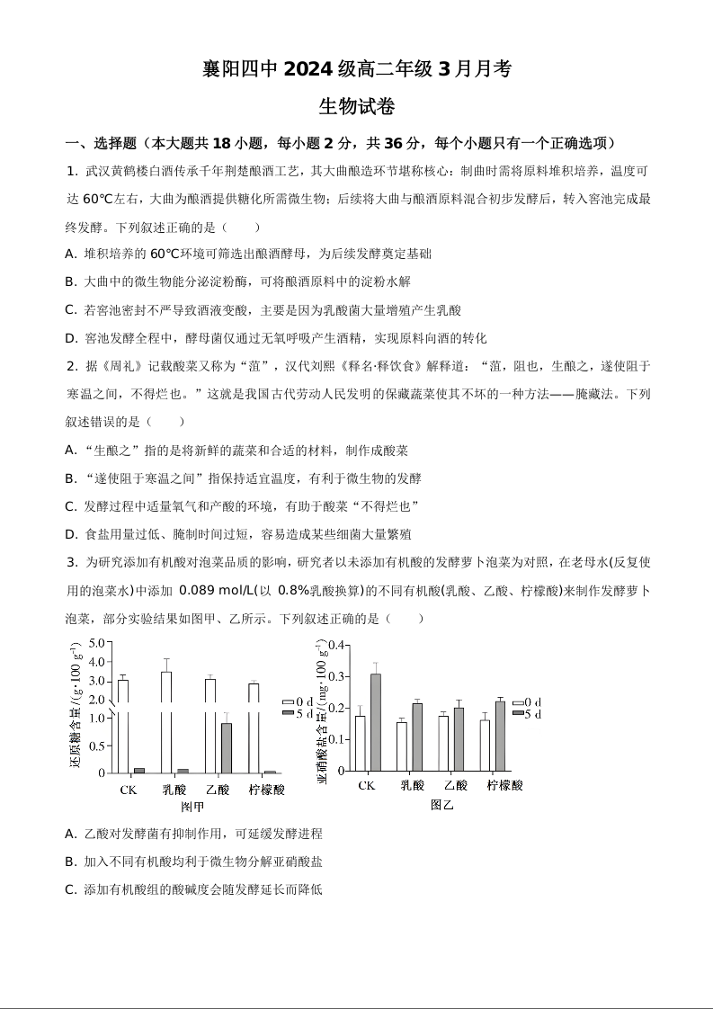湖北省襄阳市第四中学2025-2026学年高二下学期3月阶段检测 生物.docx