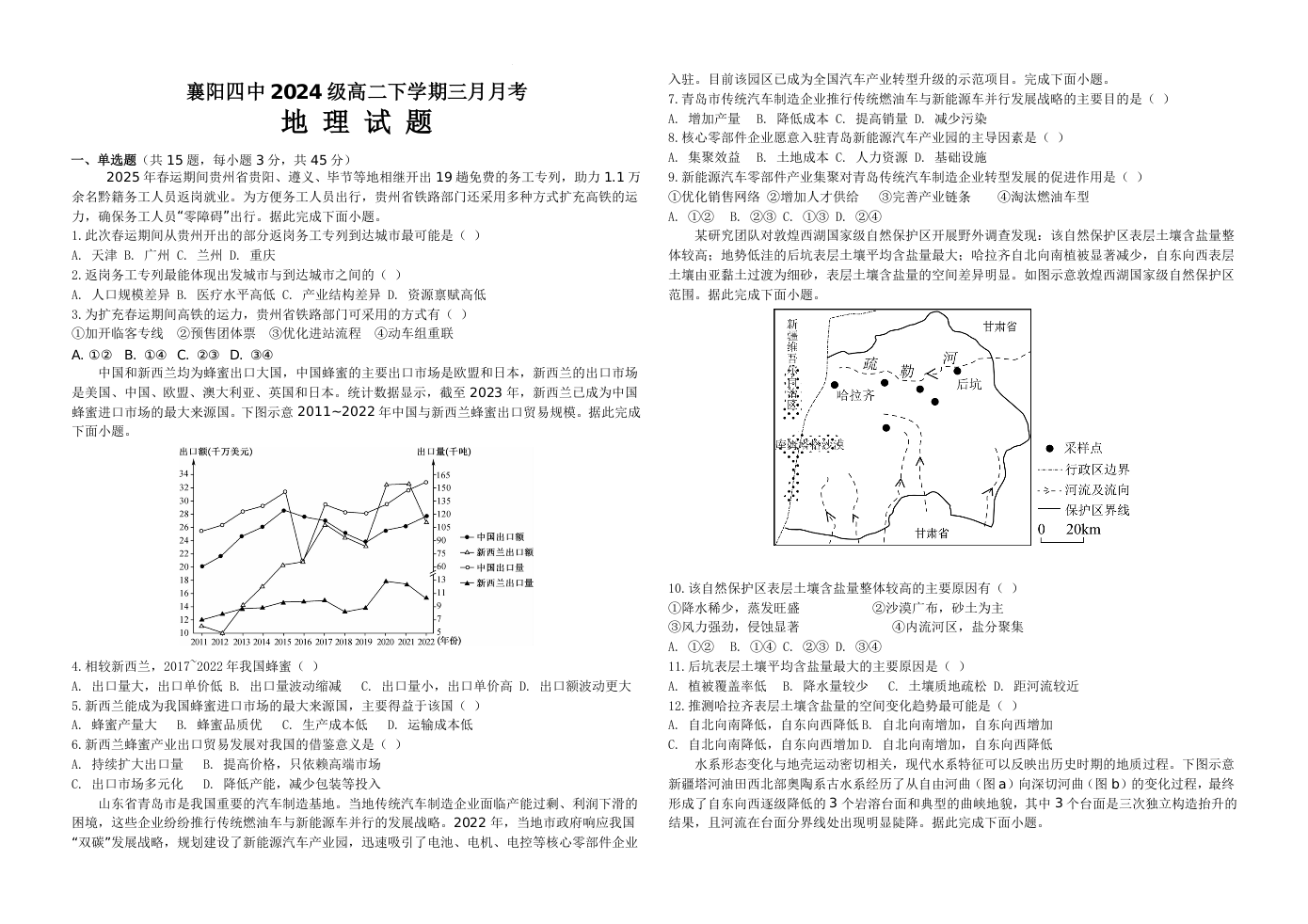 湖北省襄阳市第四中学2025-2026学年高二下学期3月阶段检测 地理试题(含答案).docx