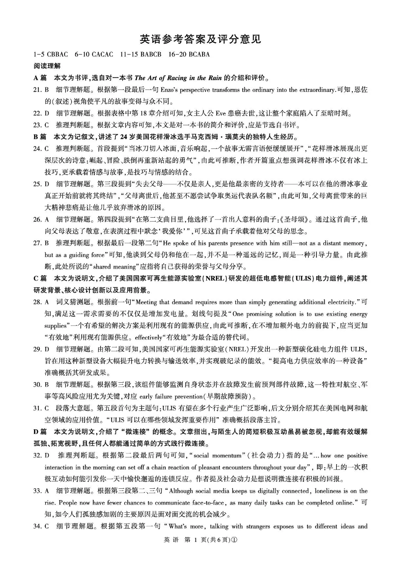 百师联盟2026届高三二轮复习联考(一)英语答案.pdf