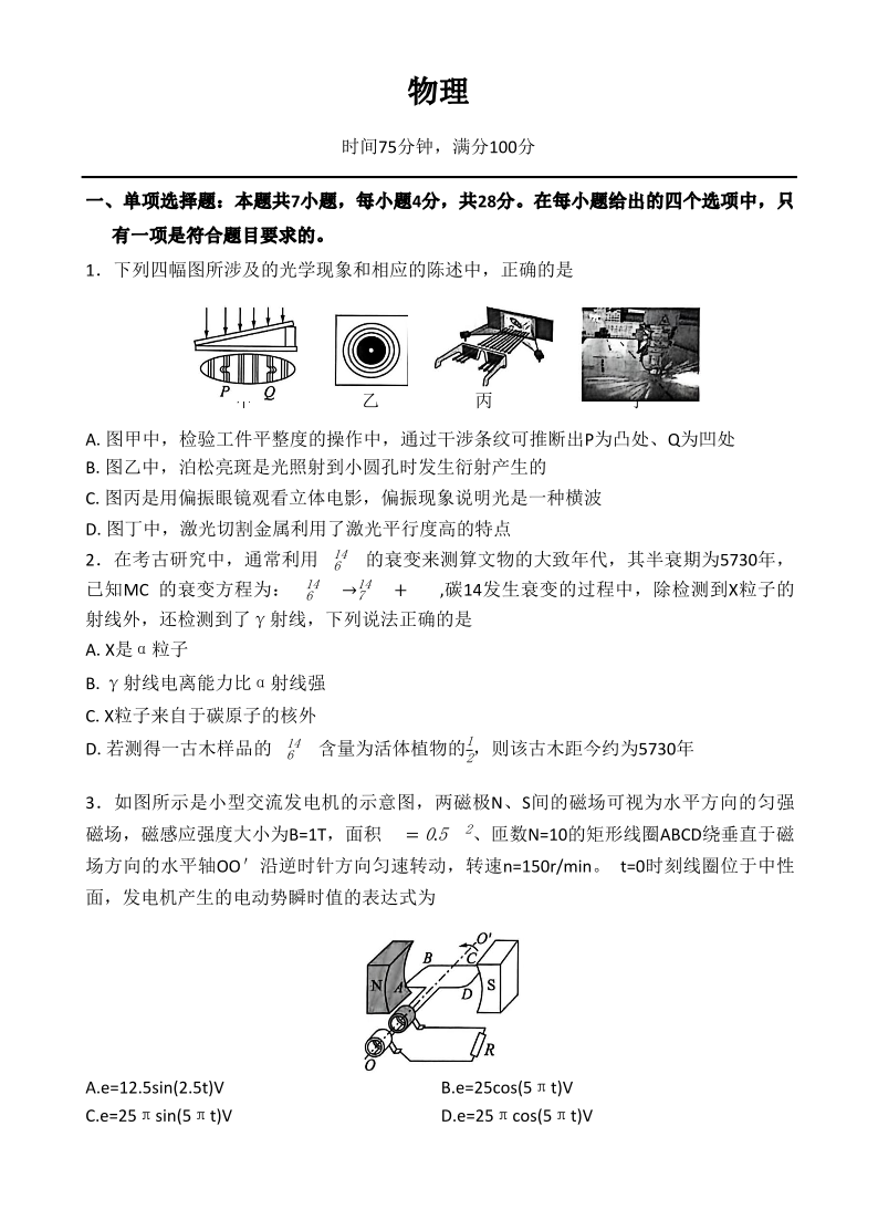 百师联盟2026届高三二轮复习联考(一)物理.pdf