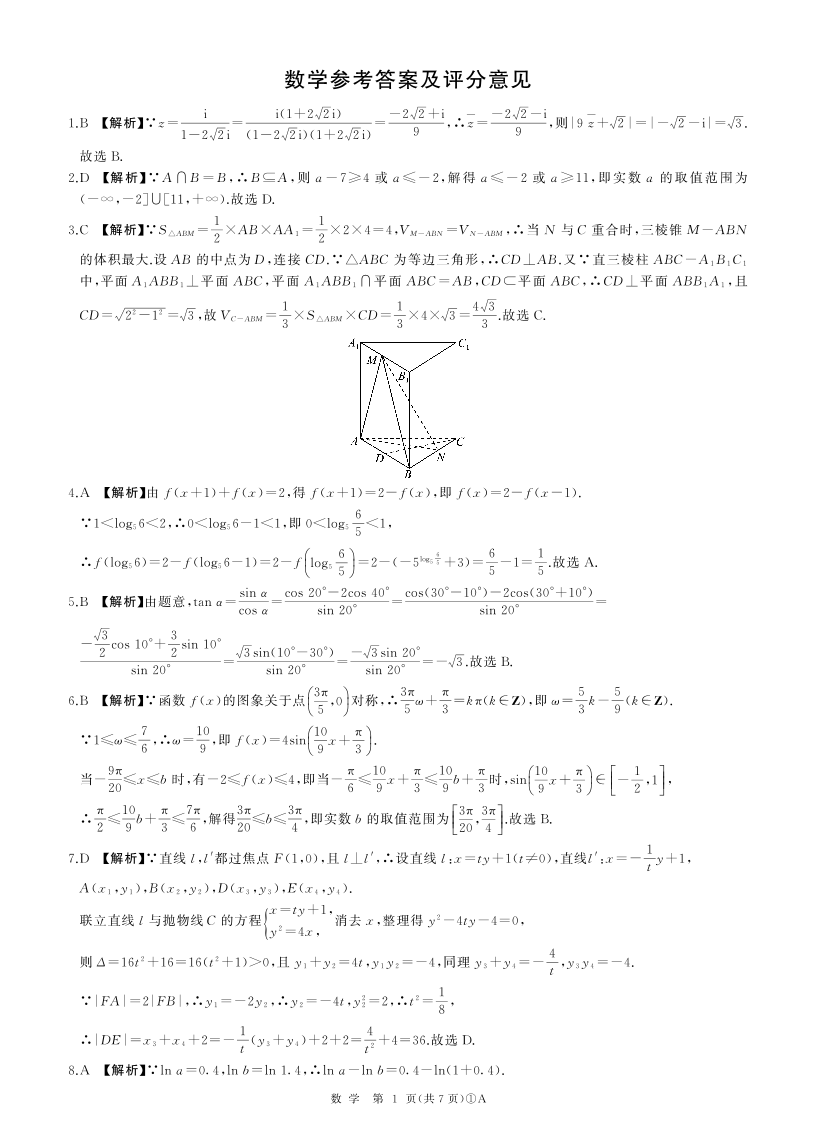 百师联盟2026届高三二轮复习联考(一)数学答案.pdf